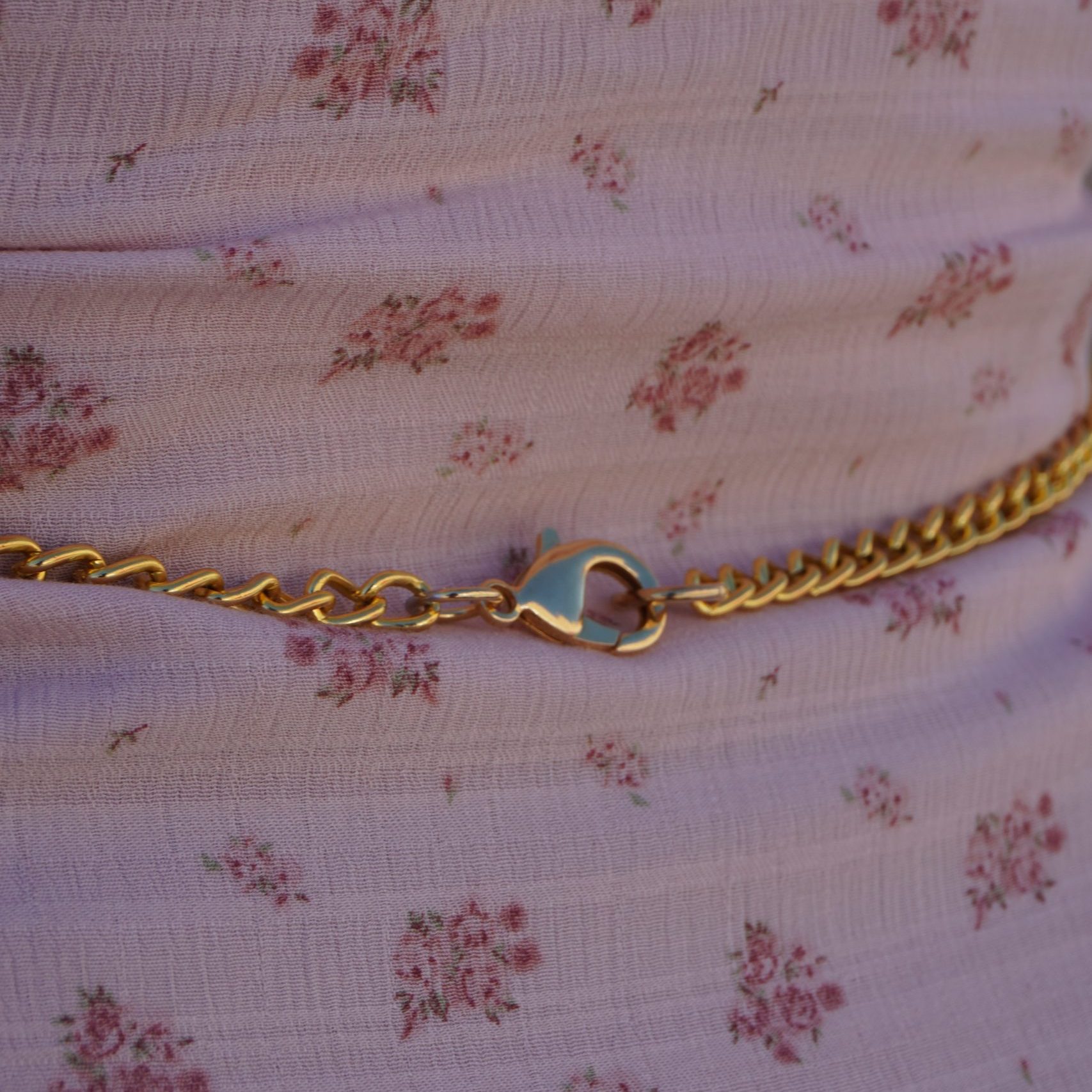 Gold colored Chain Harness, O-rings in solid brass. Can be fitted to any lenght, add measurements in the note in the checkout, else medium sized will be shipped.