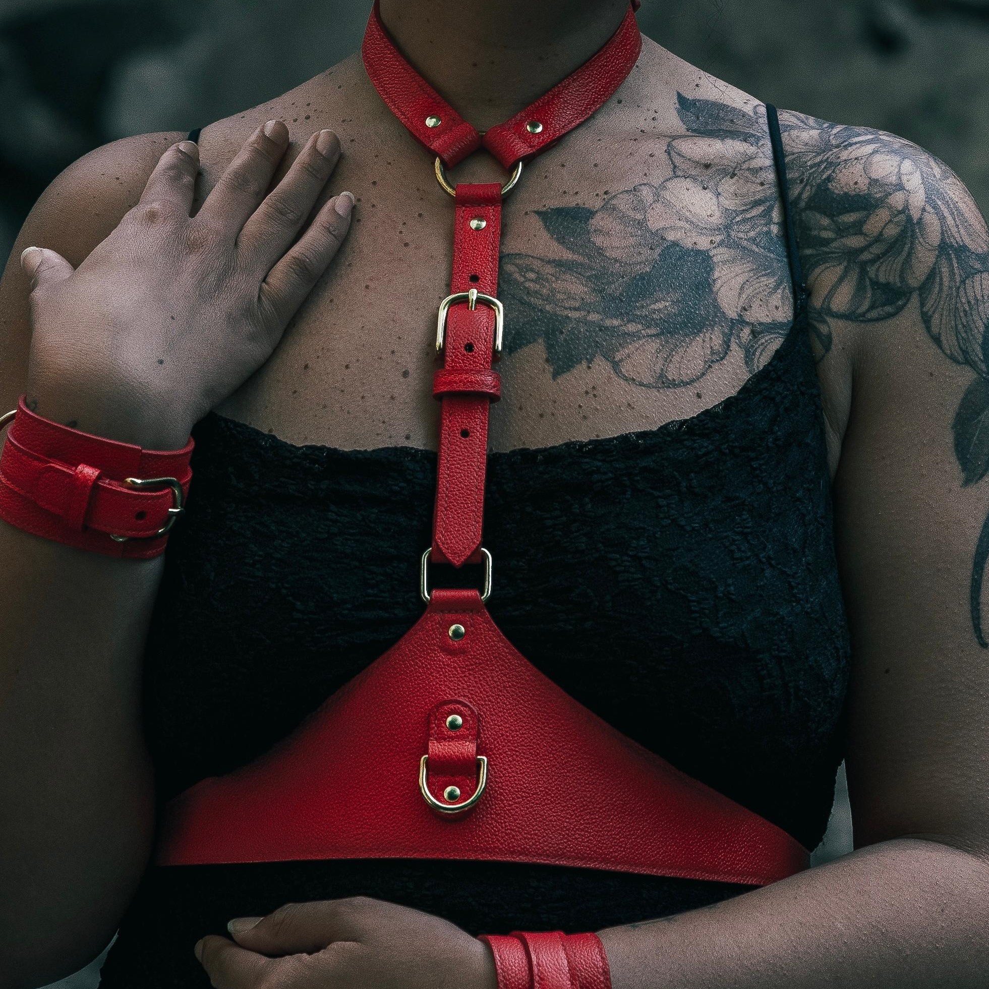 Chest harness, 2 adjustable straps for neck and waist, central D-ring.